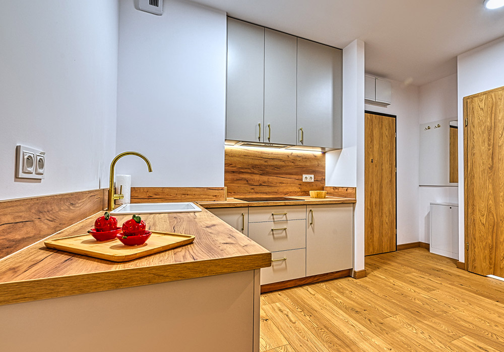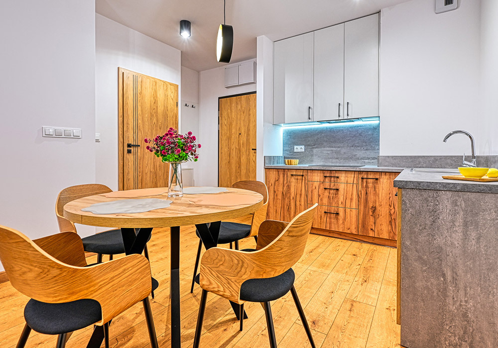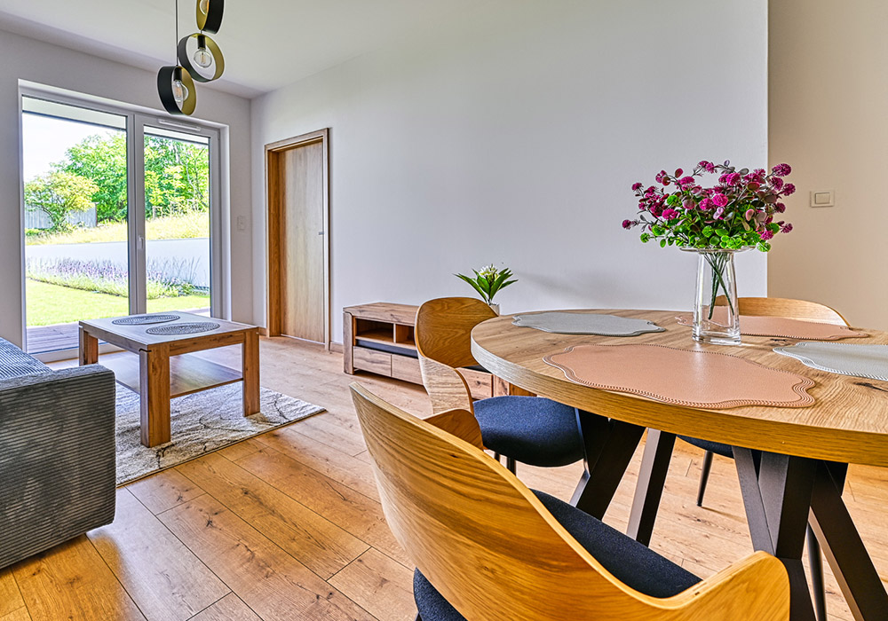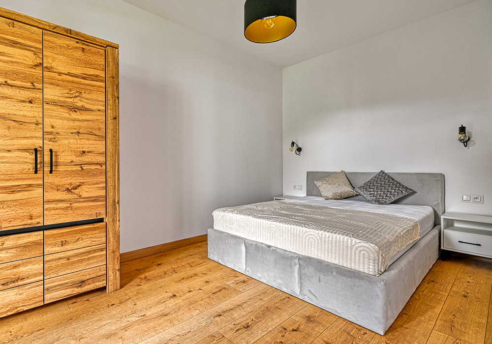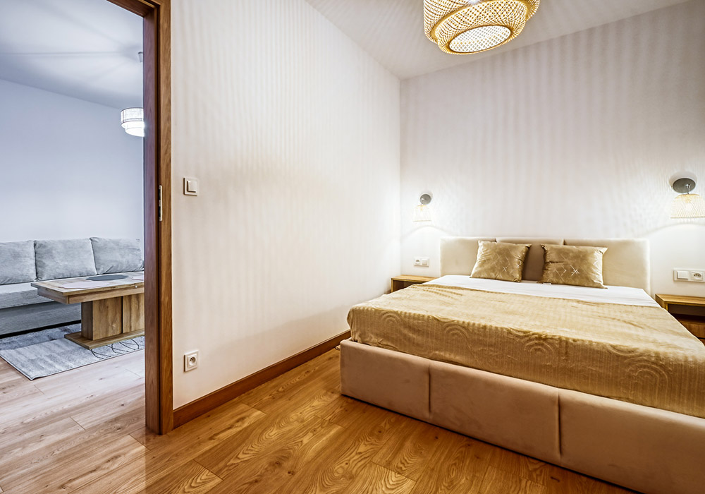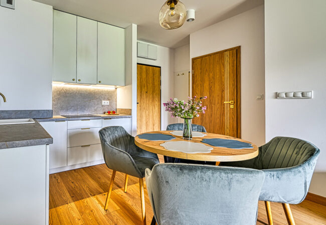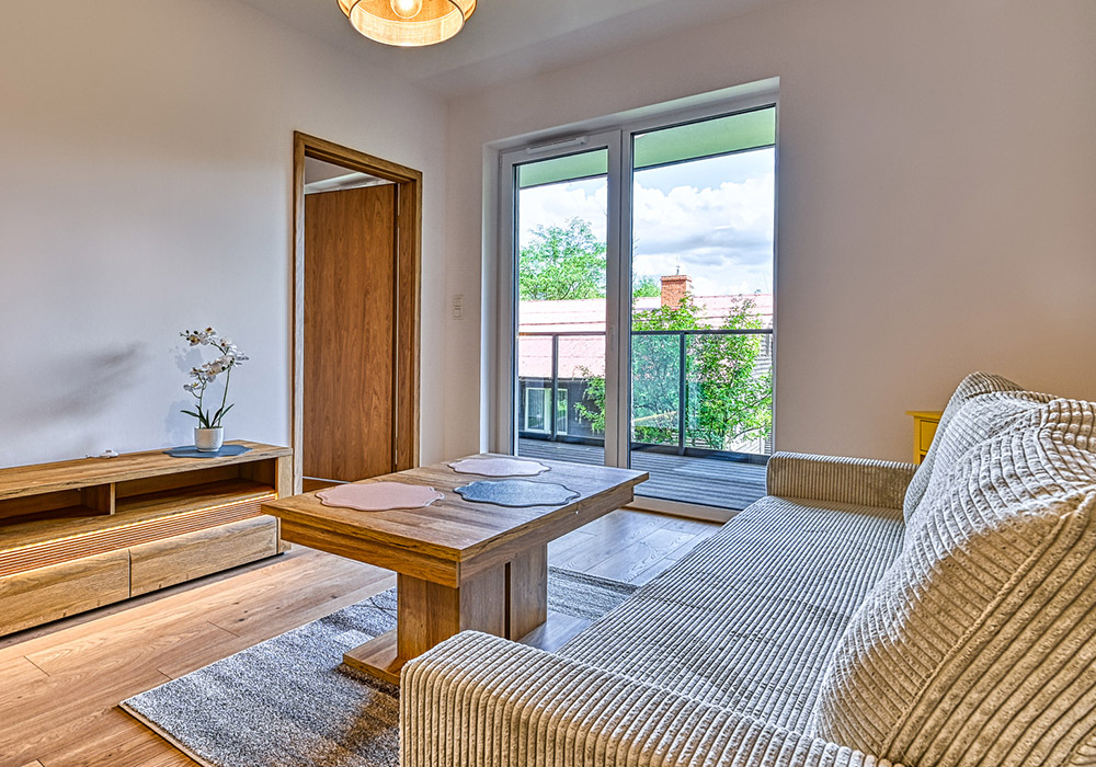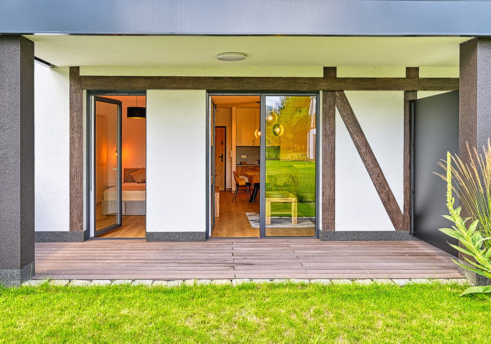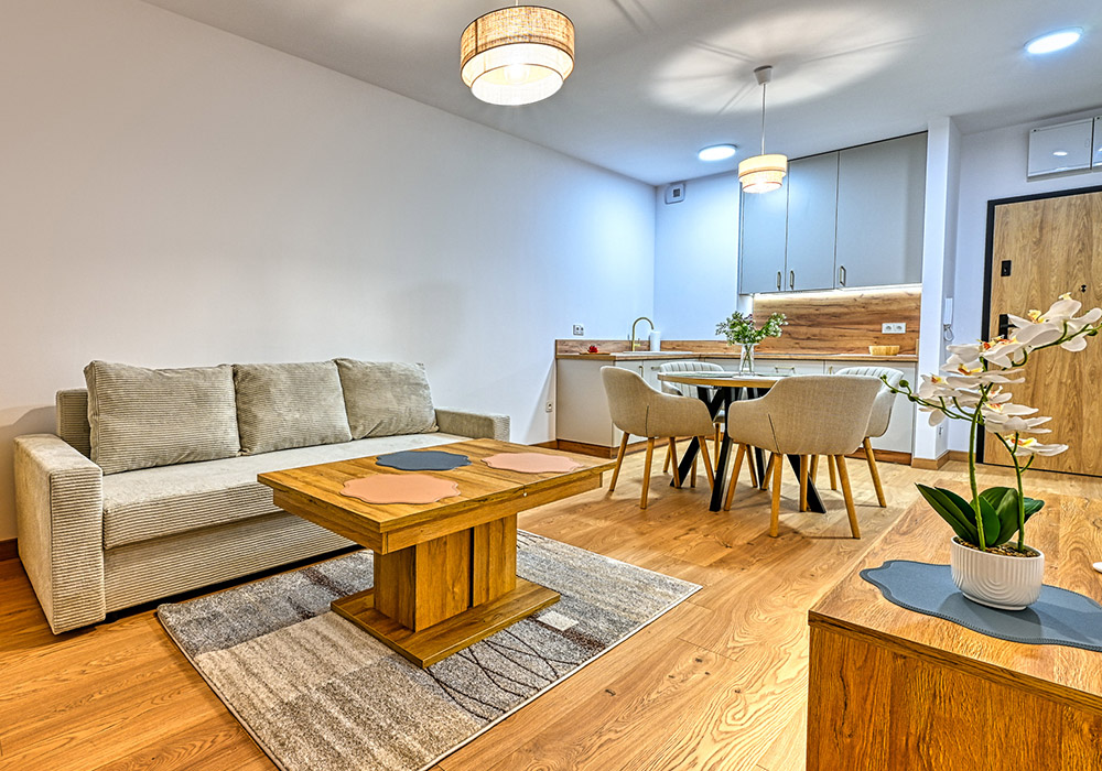 Funkcjonalny apartament z prywatnym tarasem, idealny dla osób, które cenią bliskość natury i spokój. Jasne wnętrza i otwarta przestrzeń sprzyjają relaksowi po dniu spędzonym na górskich szlakach.