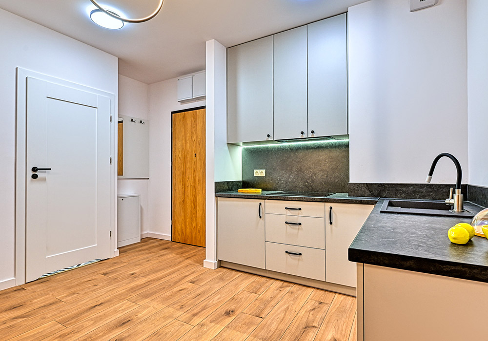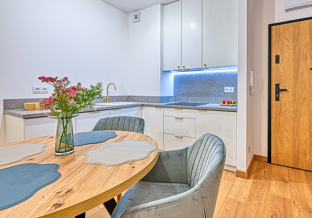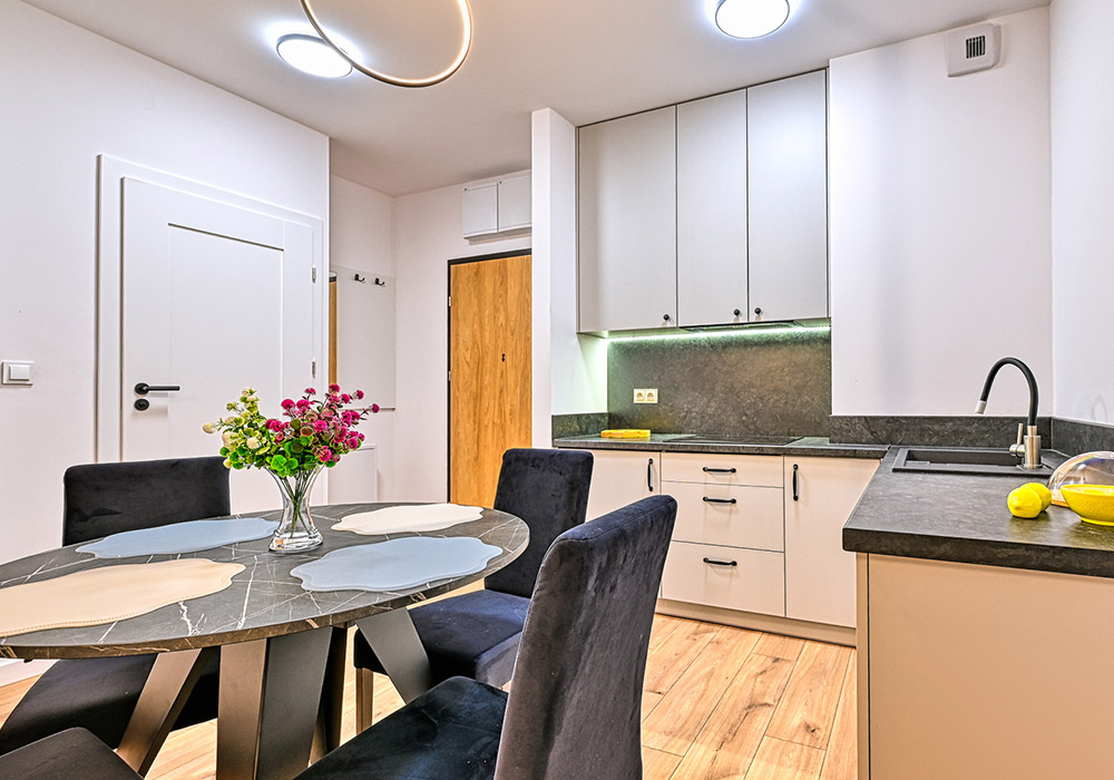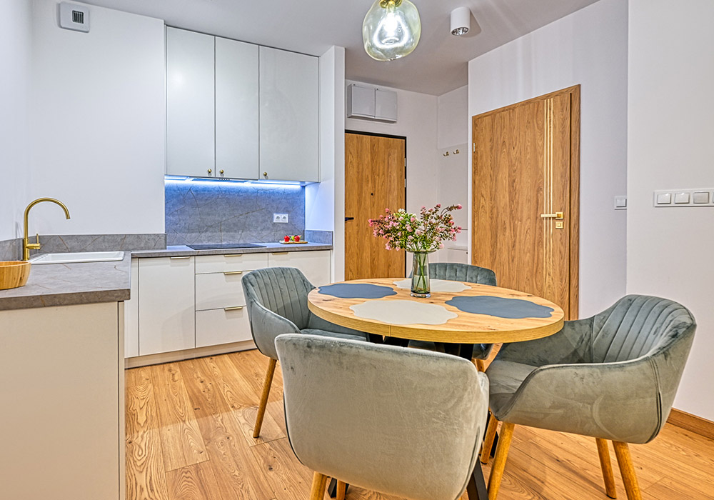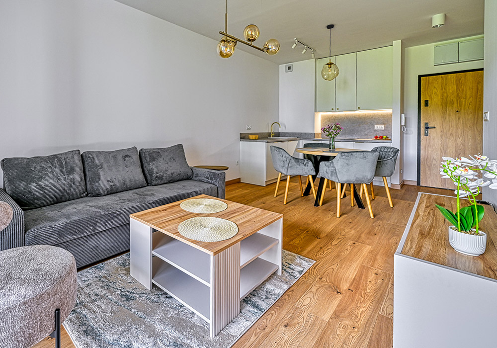 Apartament jest w pełni wykończony, umeblowany i wyposażony – gotowy do najmu lub użytkowania własnego.