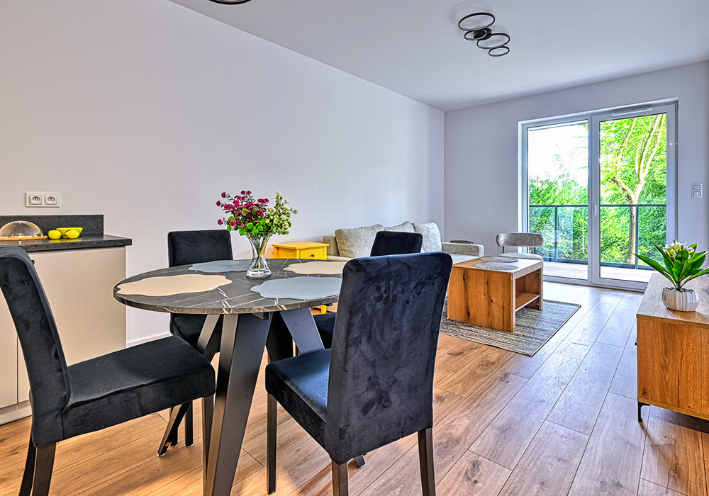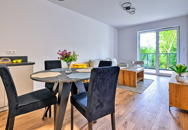 Idealny na wynajem dla 2–4 osób. Funkcjonalny układ pozwala zaaranżować strefę dzienną z wyjściem na ogródek. Apartament jest w pełni wykończony, umeblowany i wyposażony – gotowy do najmu lub użytkowania własnego.