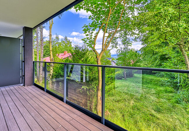 Przestronny apartament z widokiem na Kotlinę Jeleniogórską. Duże przeszklenia w salonie gwarantują naturalne światło przez cały dzień. Idealny dla par, singli lub jako apartament inwestycyjny.